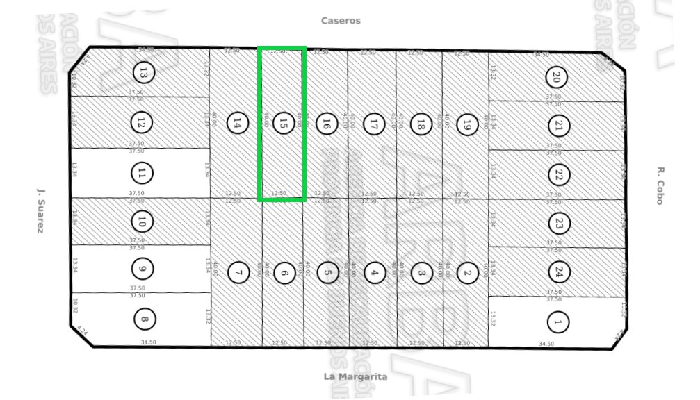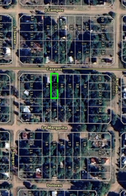 Posee una superficie de 500m2, a razón de 12,5 metros de frente al Oeste y 40 metros de fondo, y añeja forestación en su sector posterior.