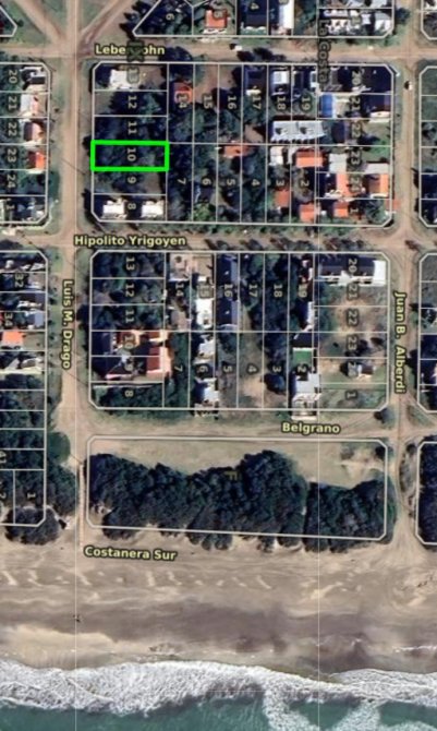 Ubicado en la avenida Drago, entre Yrigoyen y Lebensohn, este terreno se encuentra a sólo 100 metros del mar, reodeado por casas de muy buen nivel edilicio.