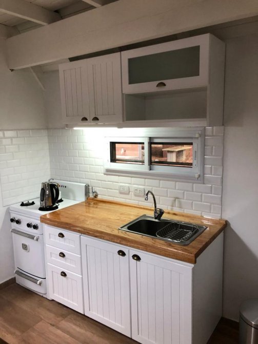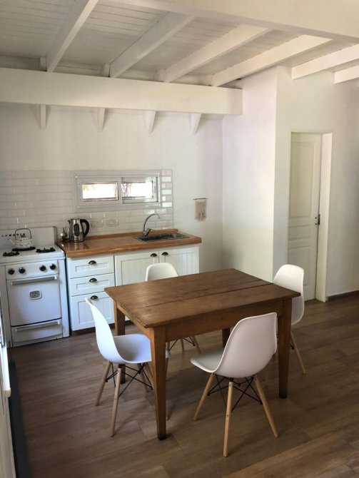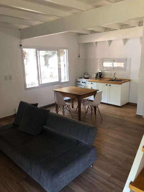 Ambas poseen aproximadamente 50 m² cubiertos, distribuidos en living-comedor-cocina y baño completo en planta baja, más un entrepiso de madera como dormitorio.