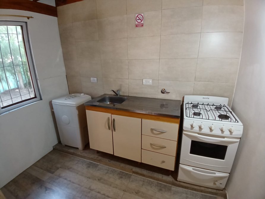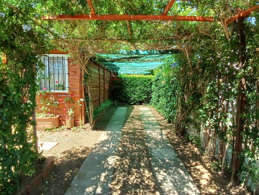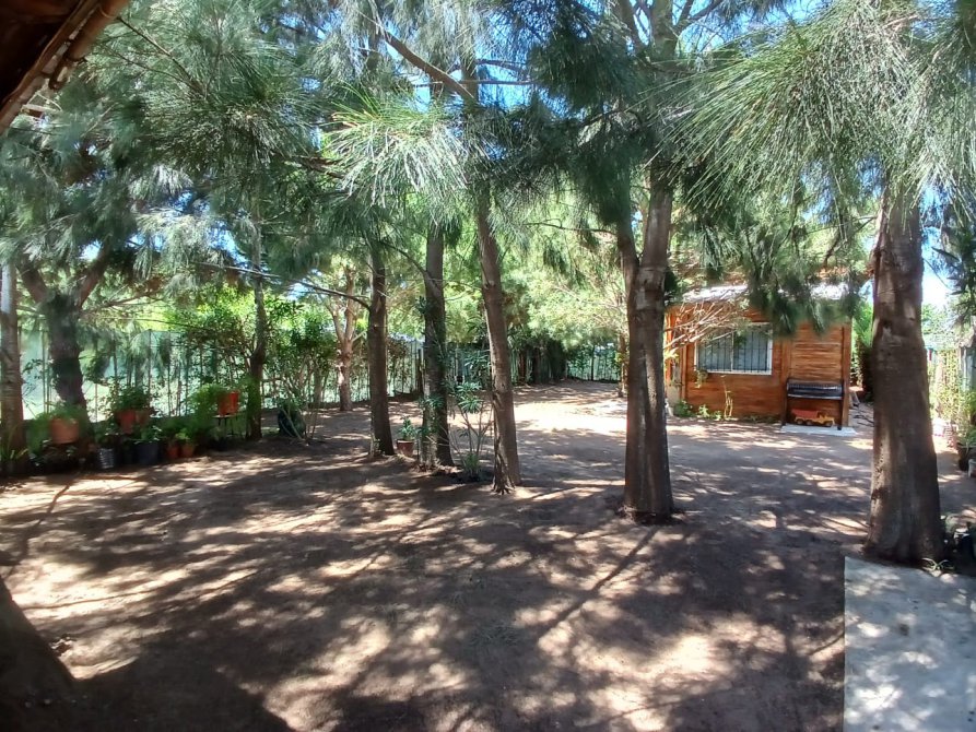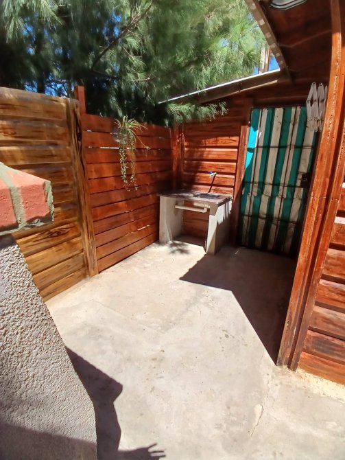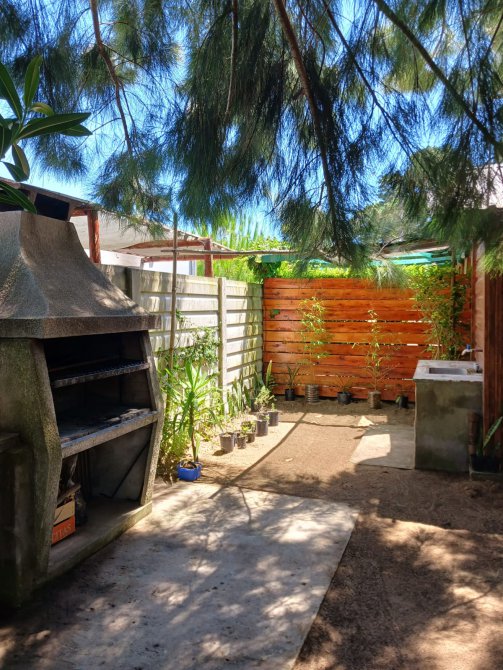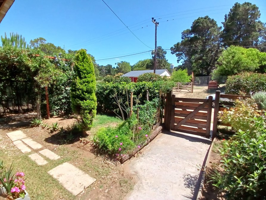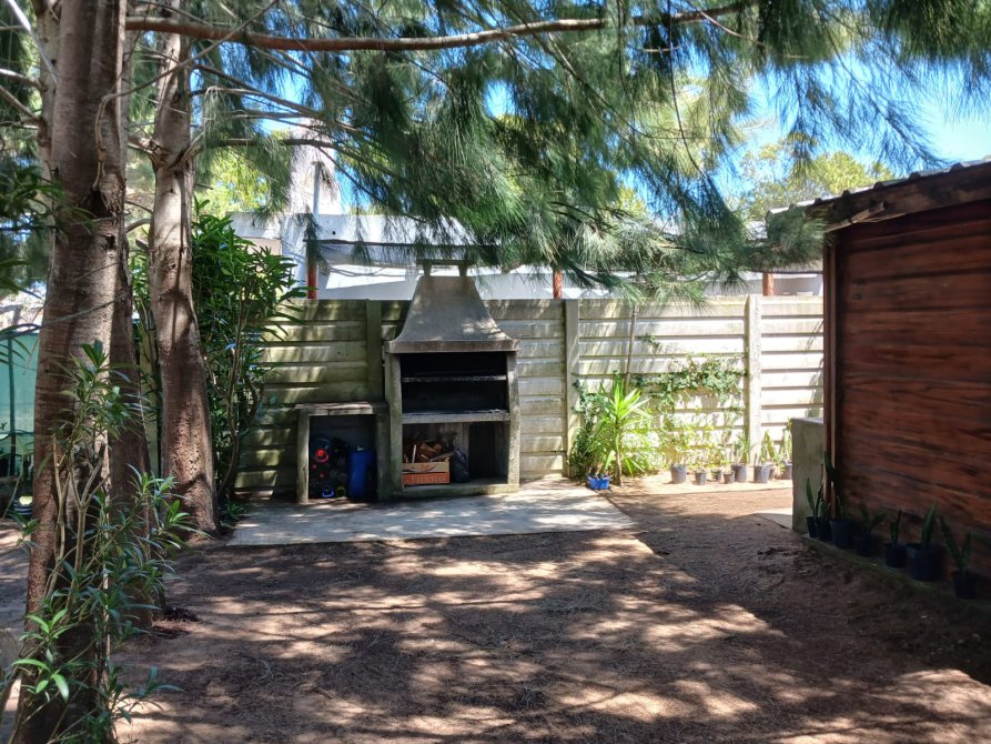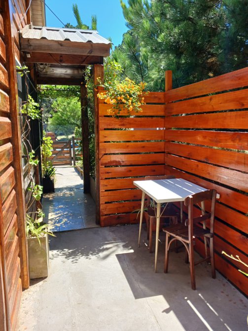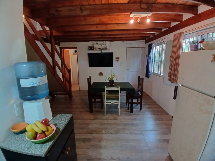 La casa delantera cuenta con 30m2 cubiertos, y se compone de comedor-cocina, dormitorio y baño.