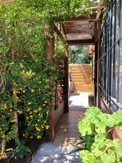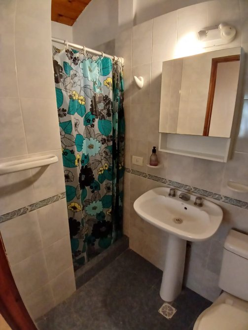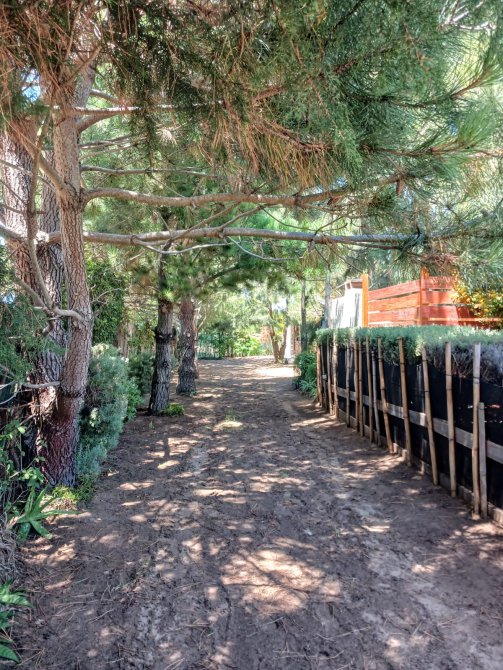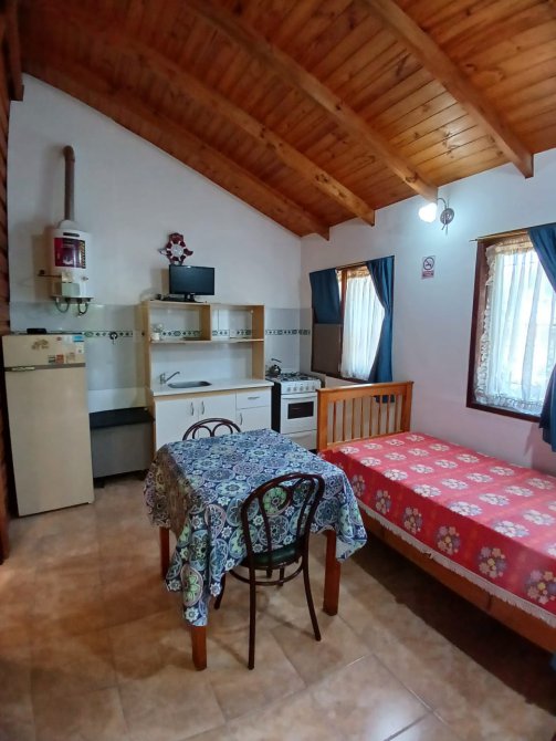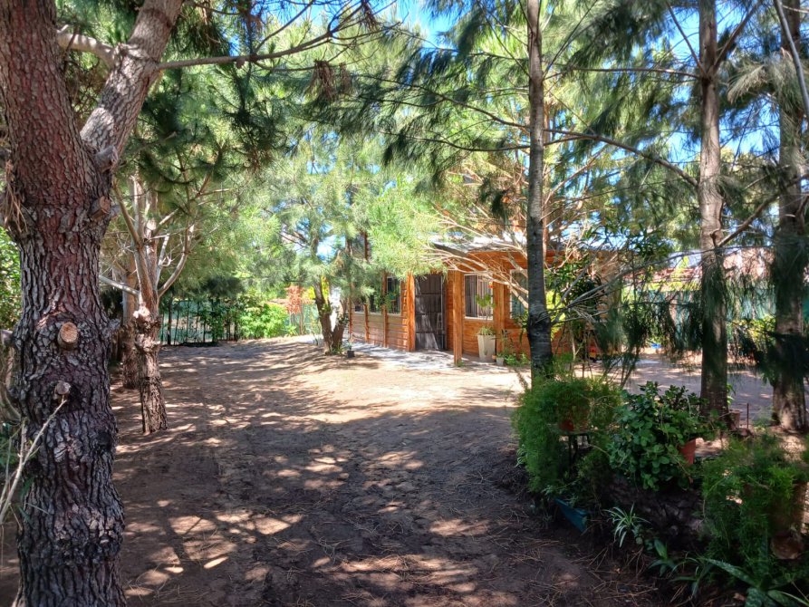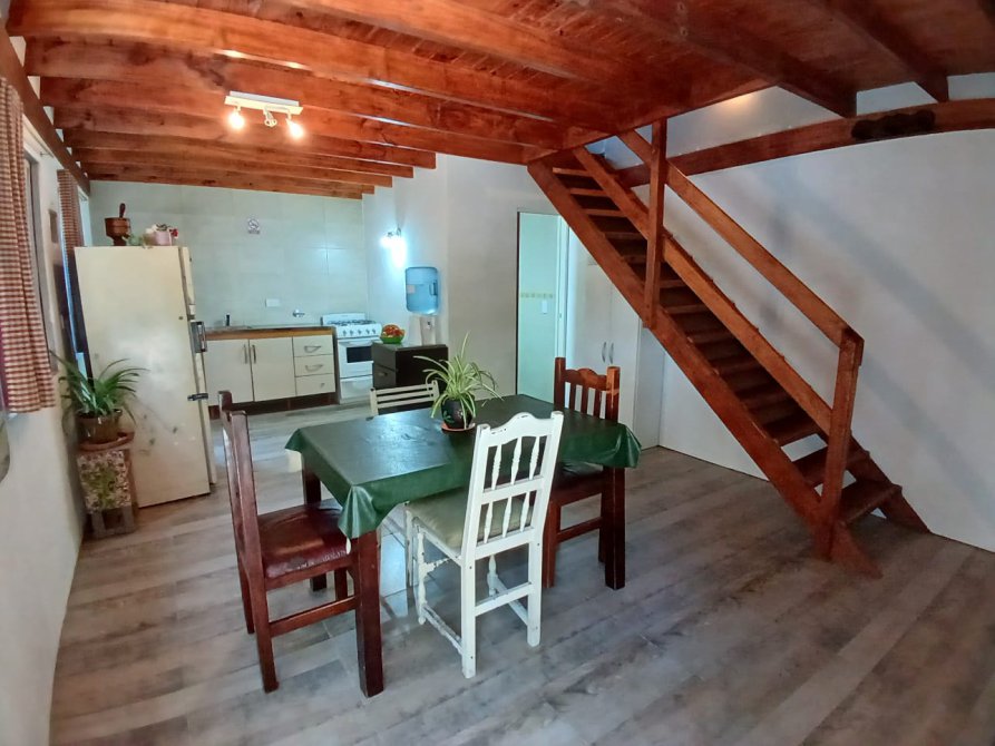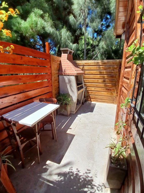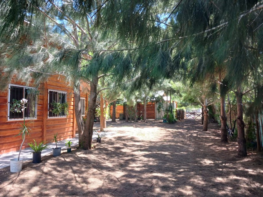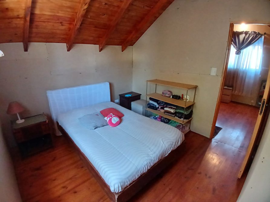 La casa delantera cuenta con 30m2 cubiertos, y se compone de comedor-cocina, dormitorio y baño.