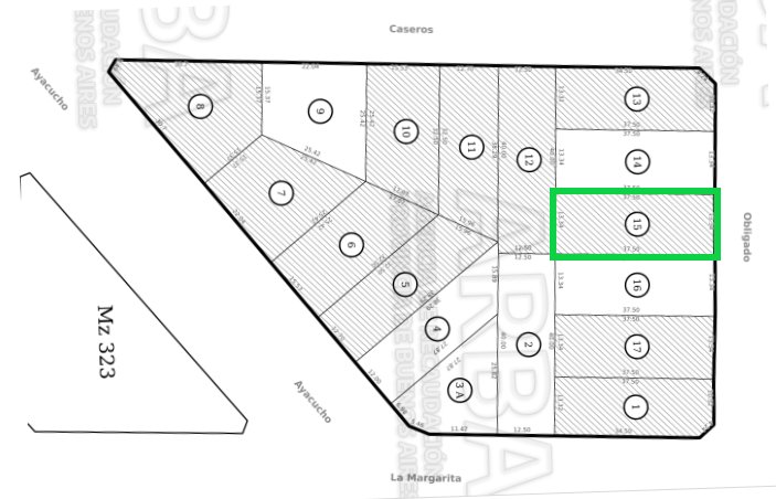 Medidas: 13,34 m de frente al Norte x 37,5 m de fondo