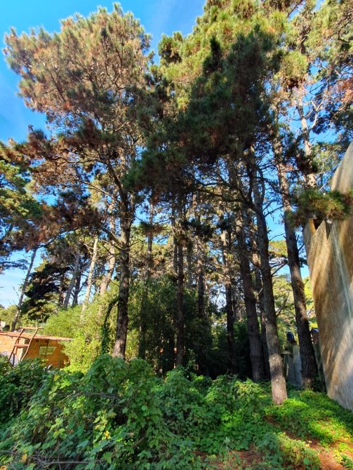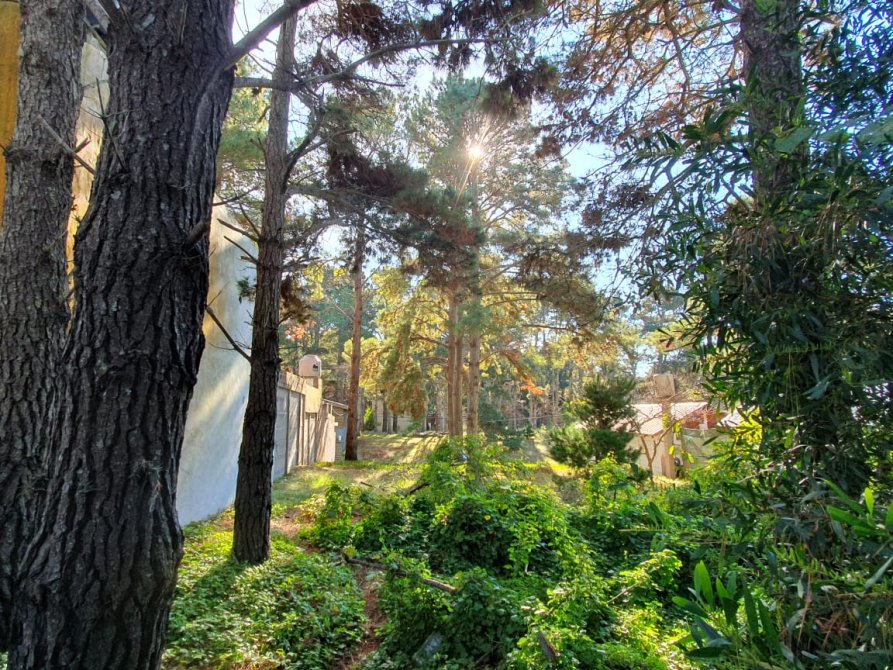 Forestación añeja con pinos al frente y al fondo, y sector despejado en el centro del lote