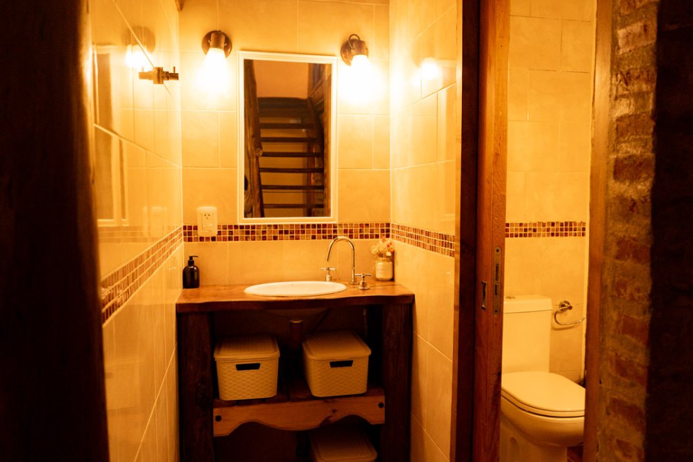 La edificación cuenta con 103 m² cubiertos, 52 m² de entrepiso de madera y 46 m² semicubiertos.