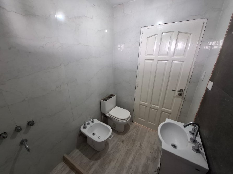 Planta baja (unidad 1): departamento de tres ambientes con comedor-cocina, dormitorio, baño y parrilla.