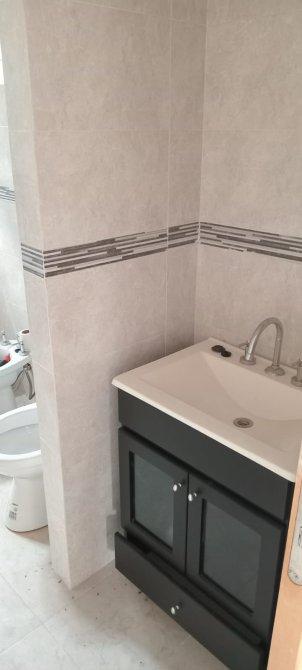 Departamento 3 ambientes en primer piso: aproximadamente 75 m², con living-comedor-cocina integrados, baño completo, dos dormitorios y balcón al frente.