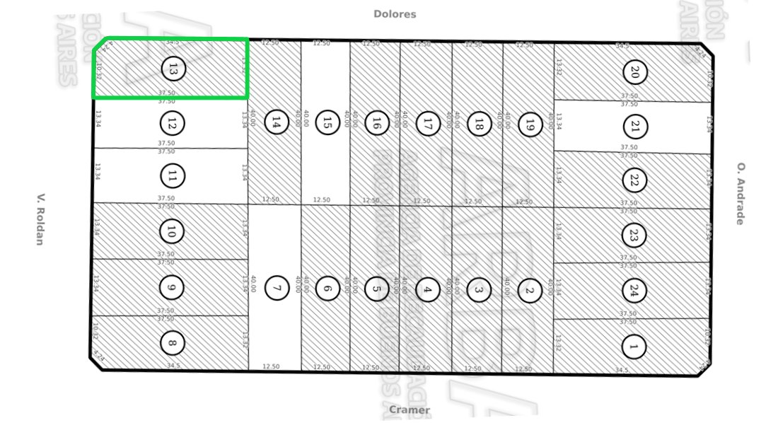 Ubicado en la intersección de las calles Dolores y avenida Roldán, este terreno cuenta con 13,34 metros de frente por 37,5 de fondo.
