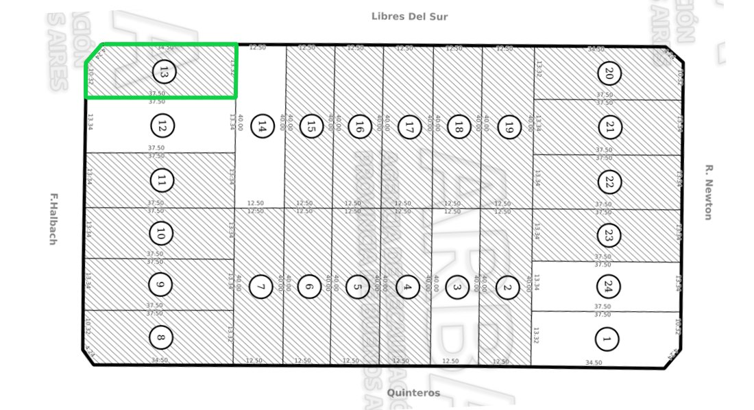 El mismo cuenta con 495m2 de superfice compuestos por 13,34m de frente y 37,5 metros de fondo, menos la ochava.
