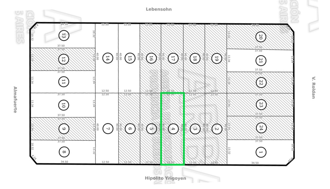 Cuenta con 500m2 de superficie en orientación Este, compuestos por 12,5 metros de frente por 40 metros de fondo.