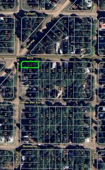 A sólo 400 metros del mar, y en una de las mejores zonas de Nueva Atlantis, se encuentra éste lote de 495m2 de superficie, a razón de 13,34 metros de frente sobre calle Blanco, y 37,5 metros de fondo sobre Rico (menos ochava en ambas medidas).
