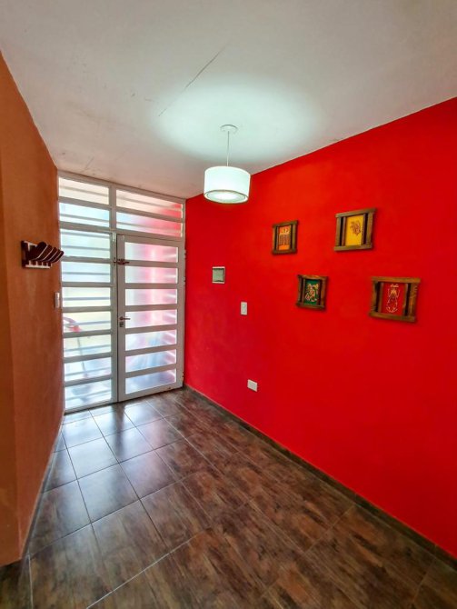 En venta hermosa casa tres ambientes con 70m2 totales (60m2 cubiertos), sobre terreno de 500m2 de superficie, con medidas de 12,5 metros de frente al Oeste y 40 metros de fondo, cercado con alambre romboidal y postes de hormigón, y frente con muro y dos tranqueras.