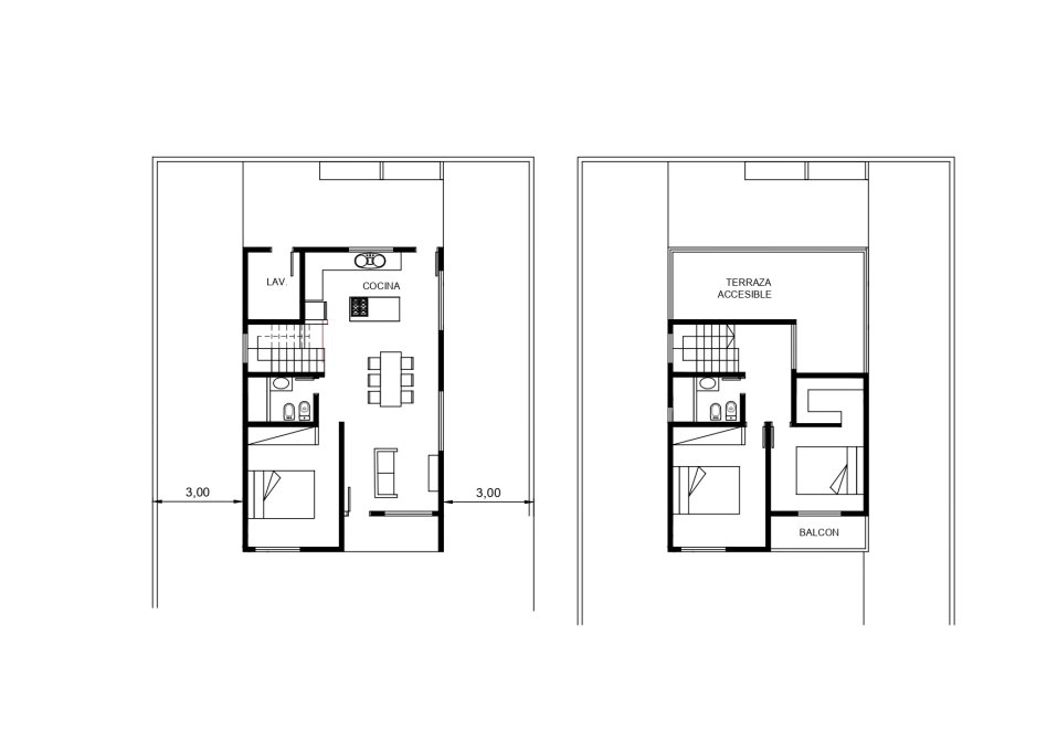 Cuenta con 110m2 totales aproximadamente, y se compone de living-comedor-cocina, lavadero, dormitorio y baño en planta baja, y primer piso con dos dormitorios (uno de ellos con vestidor y blacón), baño y terraza.