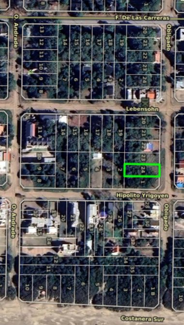 En venta lote a metros de la playa, ubicado en Obligado entre Yrigoyen y Lebensohn, en zona apta para uso residencial y comercial.