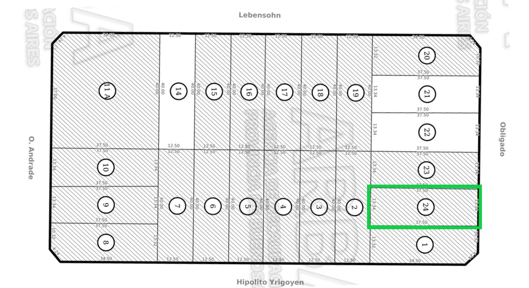 Cuenta con 500m2 de superficie, a razón de 13,34 metros de frente al Norte y 37,5 metros de fondo, suelo regular y fondo forestado.