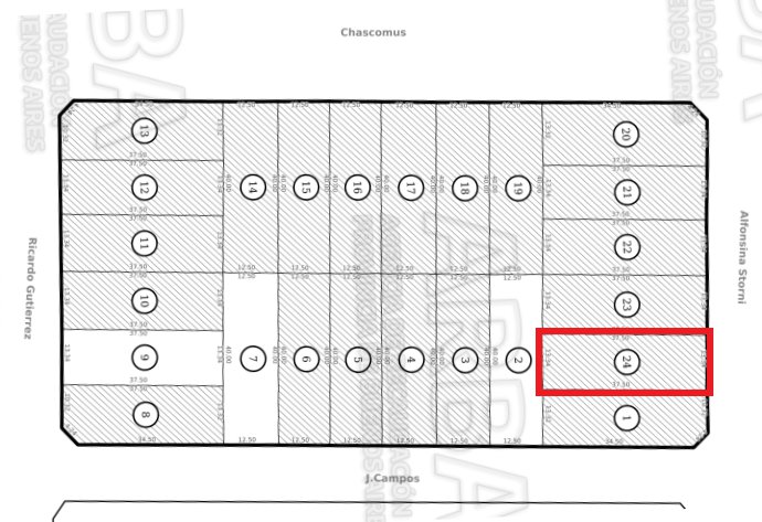 En venta lote ubicado en Storni entre Julio Campos y Chascomus, en zona de crecimiento.