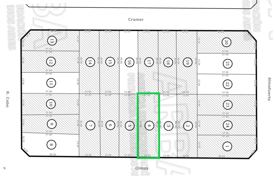 Cuenta con 500m2 de superficie, con 12,5 metros de frente al Este y 40 metros de fondo.