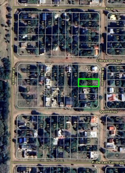 Cuenta con 13,34 metros de frente al Norte y 37,5 metros de fondo, y bases hechas para vivienda de 78m2 totales.