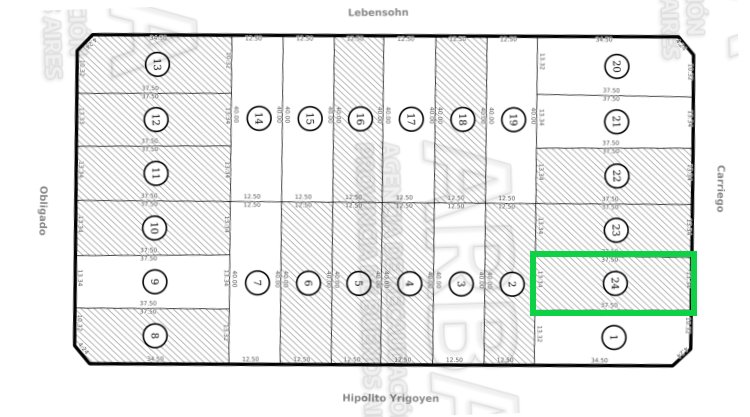 Cuenta con 500m2 de superficie, a razón de 13,34 metros de frente al Norte y 37,5 metros de fondo.