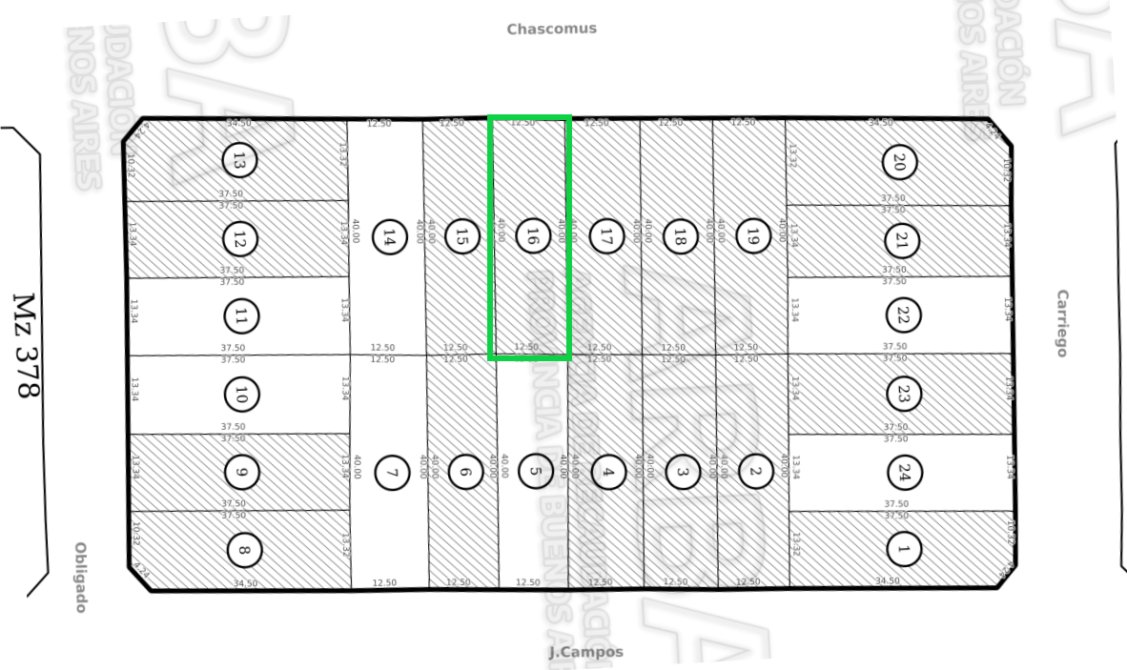 Superficie: 500 m² (12,5 m de frente al Oeste x 40 m de fondo)