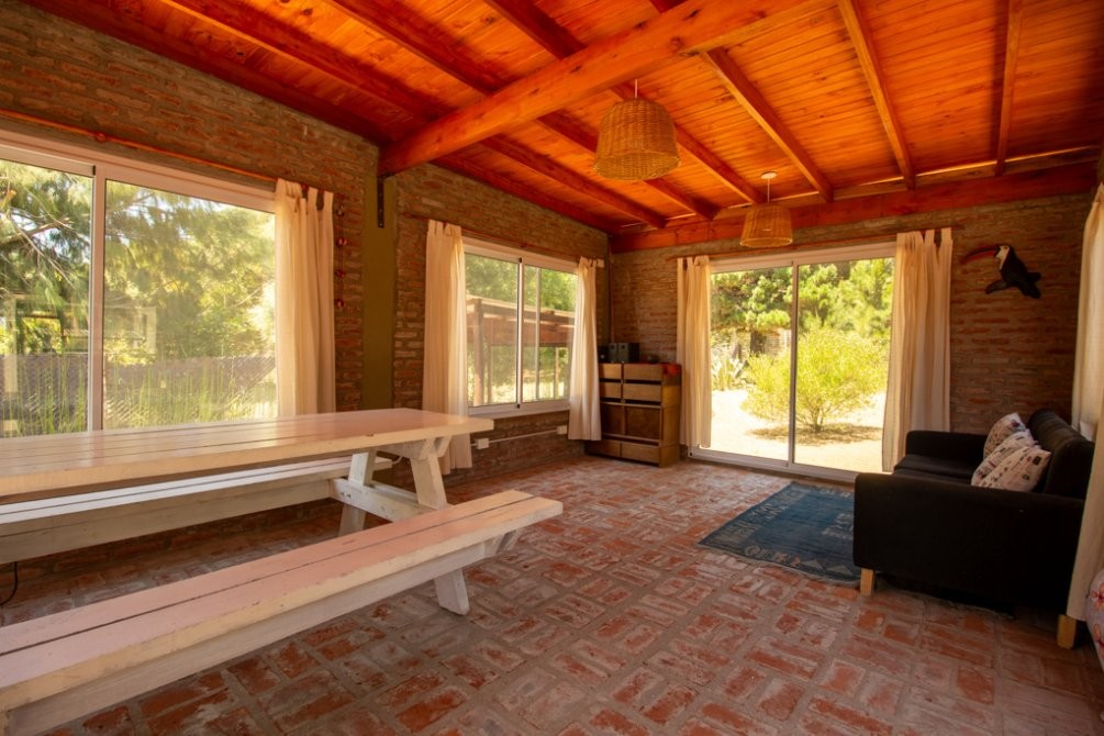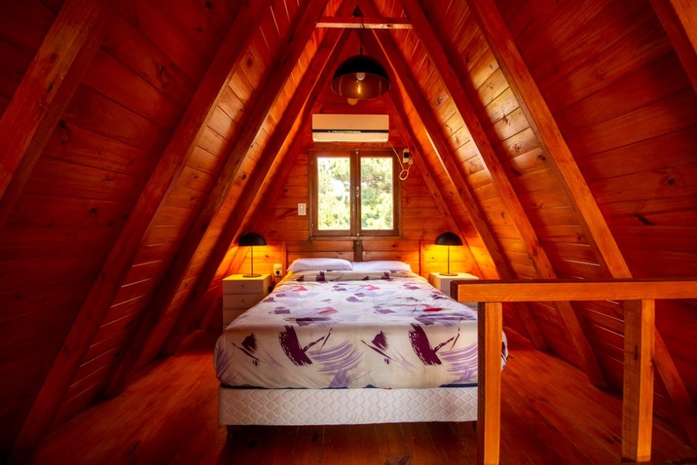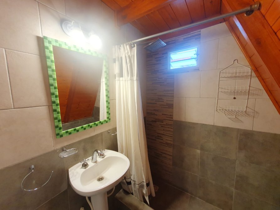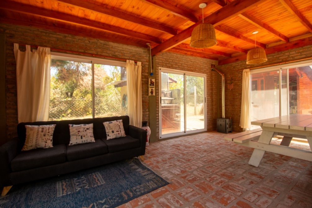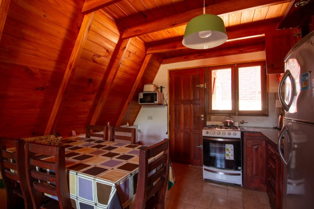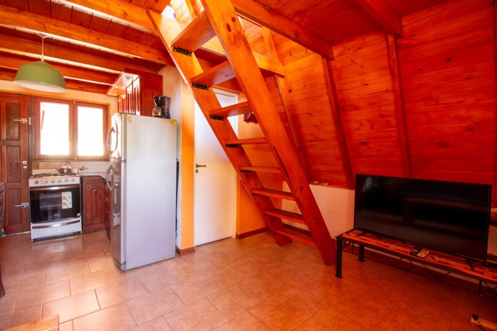 La edificación de la vivienda es de tipo alpina, con una planta baja de 30m2 con cocina-comedor integrados y baño completo, y un entrepiso de madera de alrededor de 23m2 a modo de dormitorio, con aire acondicionado. En el exterior posee un hermoso quincho de 25m2, parrilla, baulera, y espacio semicubiertro para vehículo.