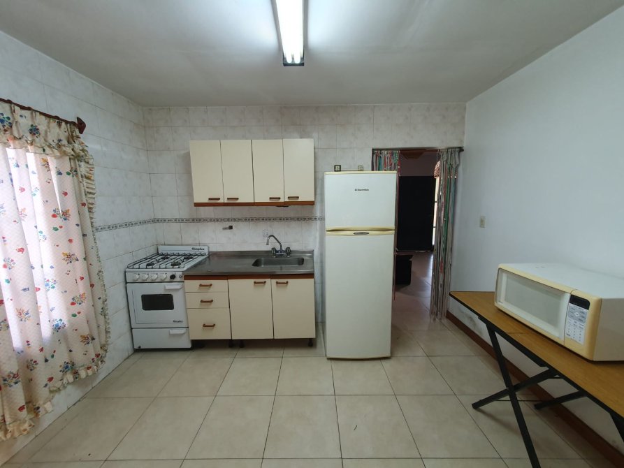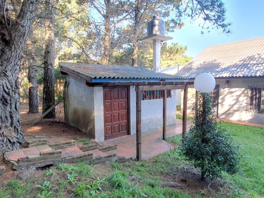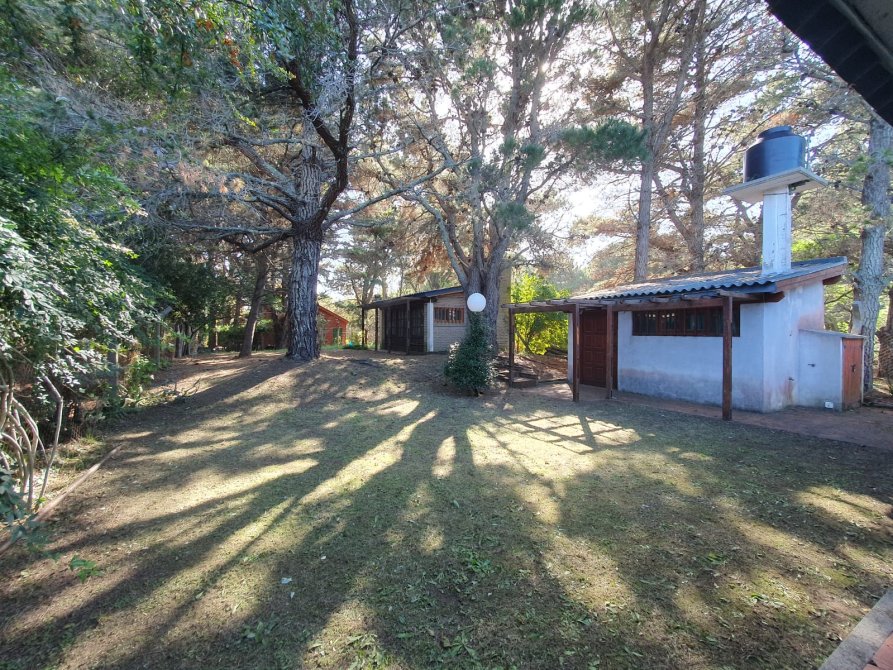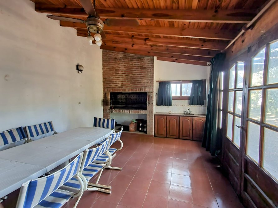 Casa principal (85 m² + 10m2 semicubiertos): amplio living-comedor, cocina separada, tres dormitorios y dos baños.