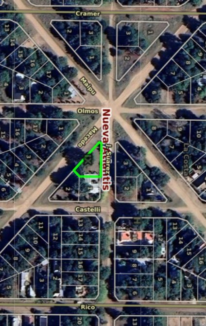 Ubicado en el cruce de las diagonales Macedo y Maipú, este lote ofrece una ubicación estratégica dentro de Nueva Atlantis, con paso del colectivo local y excelente visibilidad.