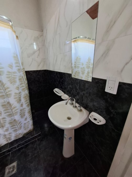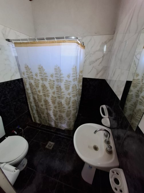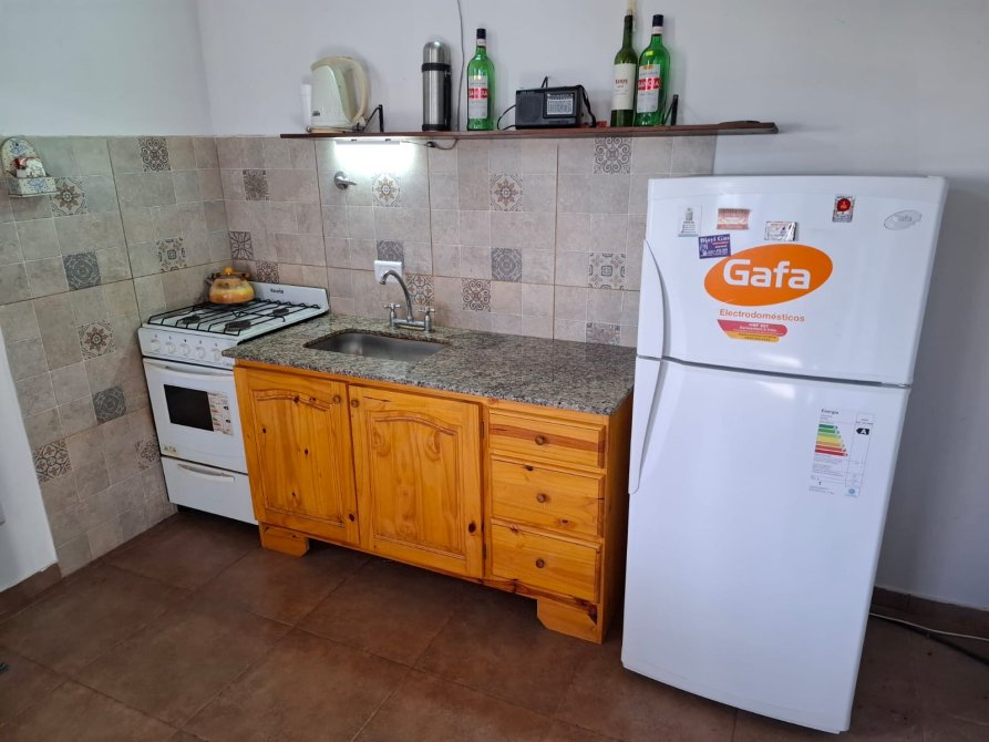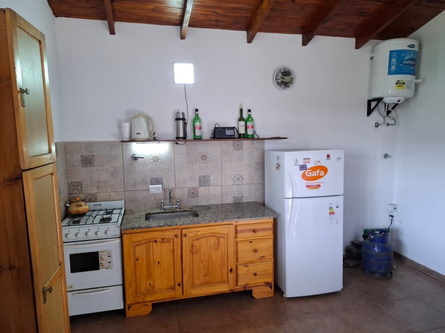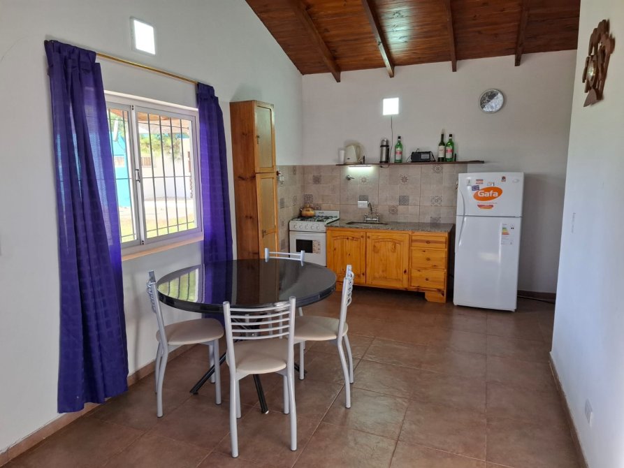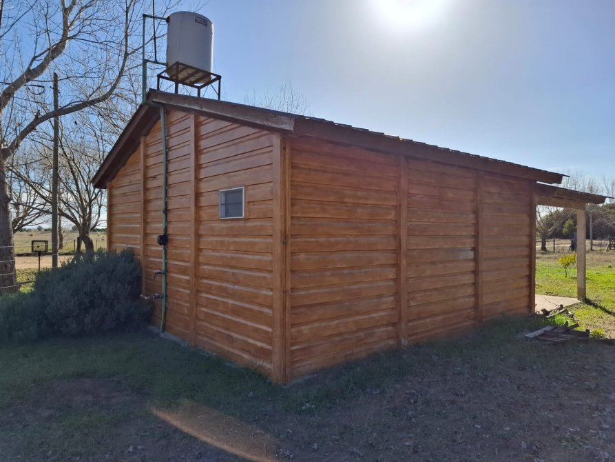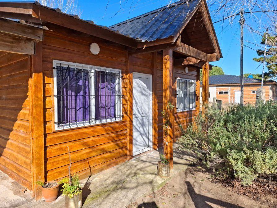 Construcción con exterior de placas premoldeadas de hormigón y revestimiento interior de ladrillo hueco de 8 cm, con revoque fino a la cal. Distribución: living-comedor integrado, baño (con conexión para bidet), dormitorio.