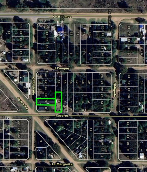 En venta propiedad conformada por dos terrenos de 500 m² cada uno, dispuestos en “L”. Uno de ellos está ubicado en Andrade entre Caseros y Julio Campos, y el otro en Caseros entre Andrade y Obligado, a tan solo una cuadra de la avenida principal, tres de la conexión asfaltada con Ruta 11 y a 1,2 km de la playa.