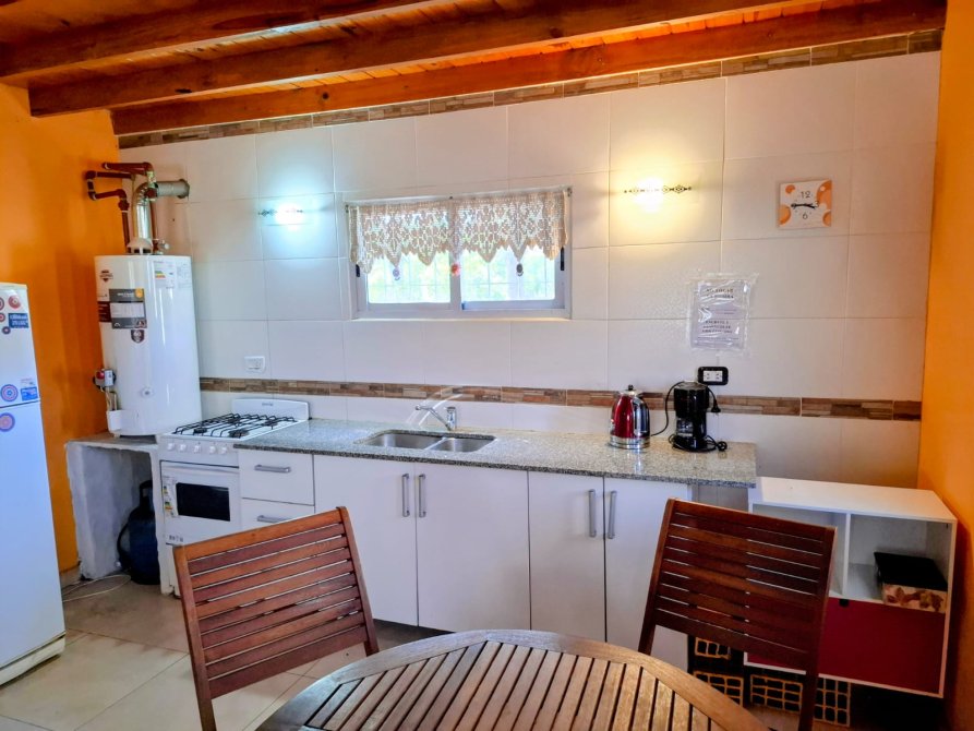 Casa de tres ambientes ubicada en Olivieri entre Rico y Castelli, a 600 metros de la playa, en zona residencial con vecinos residentes todo el año.