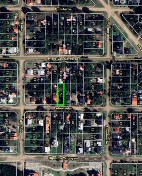 Terreno ubicado en Lebensohn entre Almafuerte y Cobo, en un entorno residencial muy agradable, a solo 200 metros de la playa y a una cuadra de la avenida principal de la localidad.