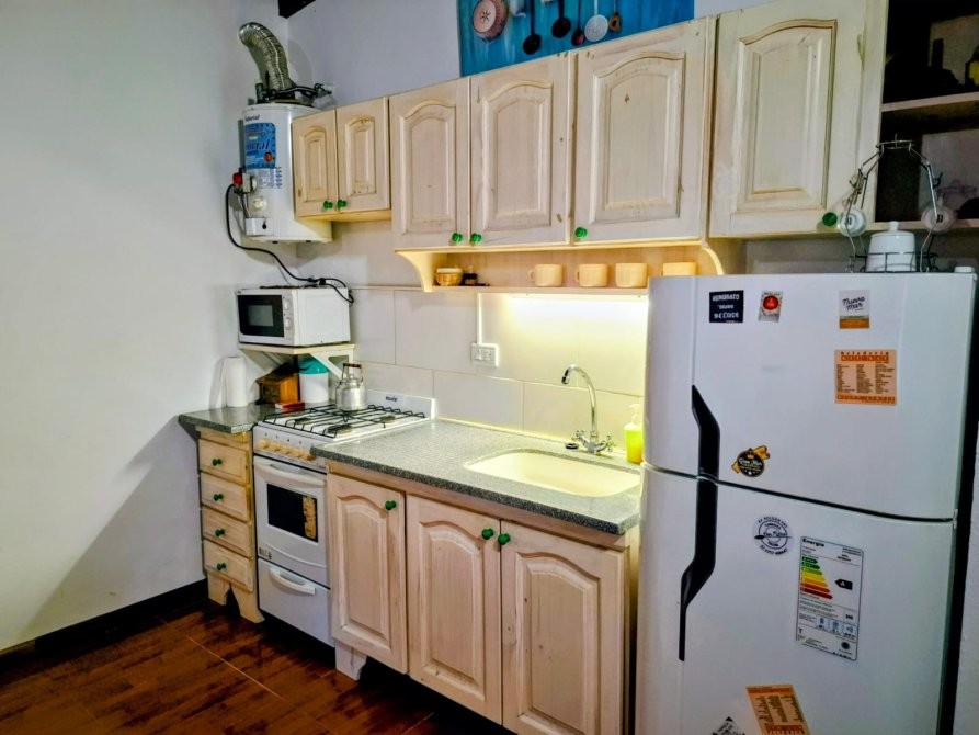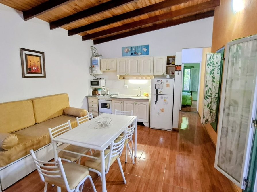 Living–comedor–cocina, baño completo, dormitorio y galería semicubierta con parrilla.