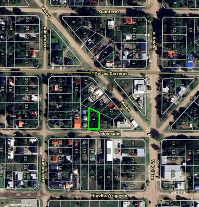 El entorno habla solo: en la esquina funciona un restaurante / heladería / cafetería, frente al lote hay juegos infantiles, y a la vuelta se concentran supermercados, kioscos y la feria artesanal de temporada, generando circulación tanto de residentes como de turistas.